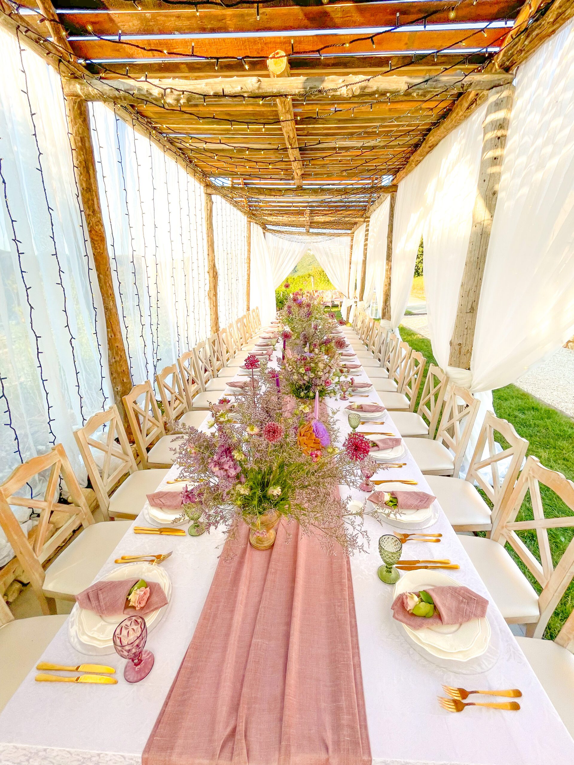 The hillside pergola offers exquisite views and a beautiful backdrop full of natural splendor. This spacious outdoor venue can be customized to fit your vision making your dream wedding a reality.